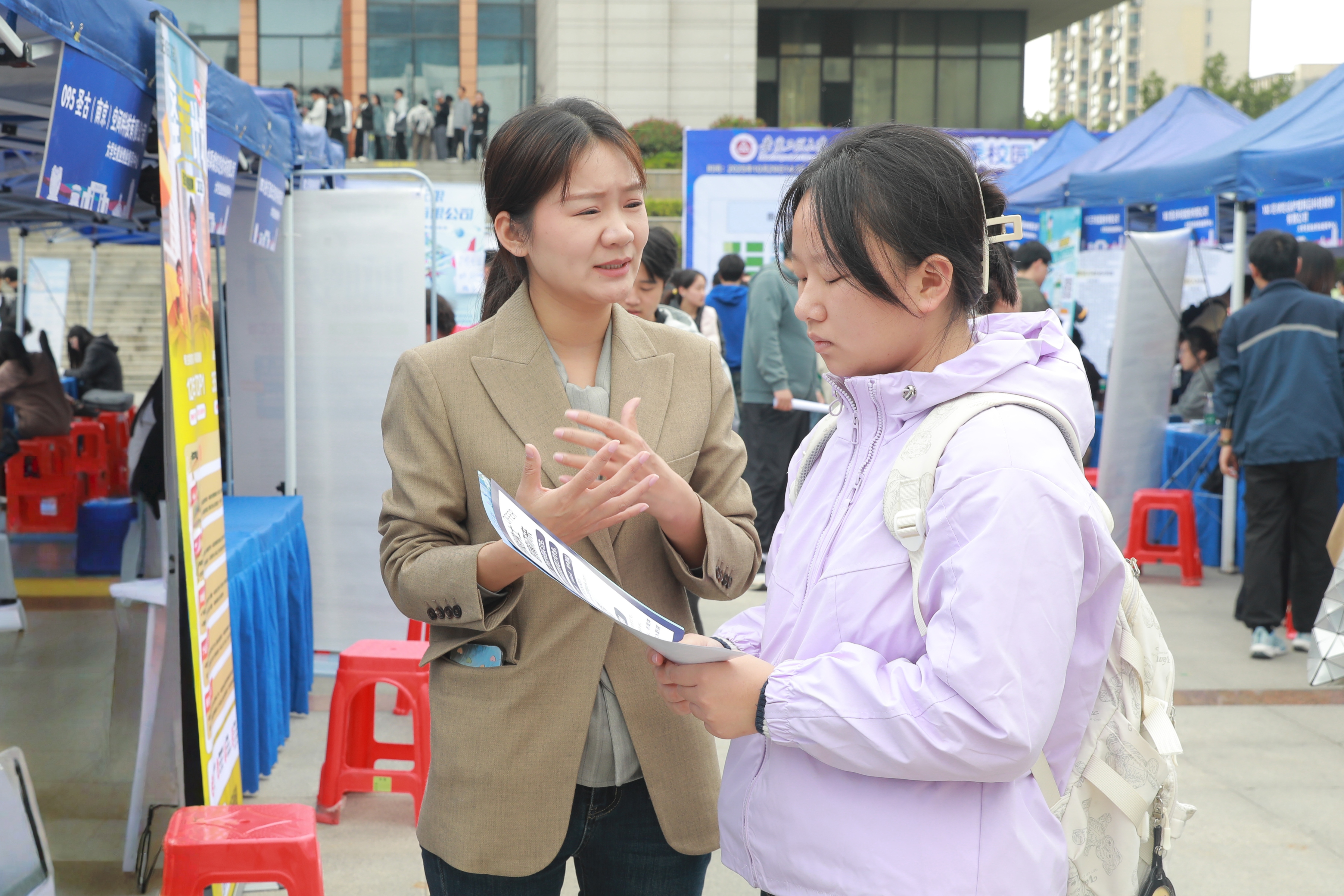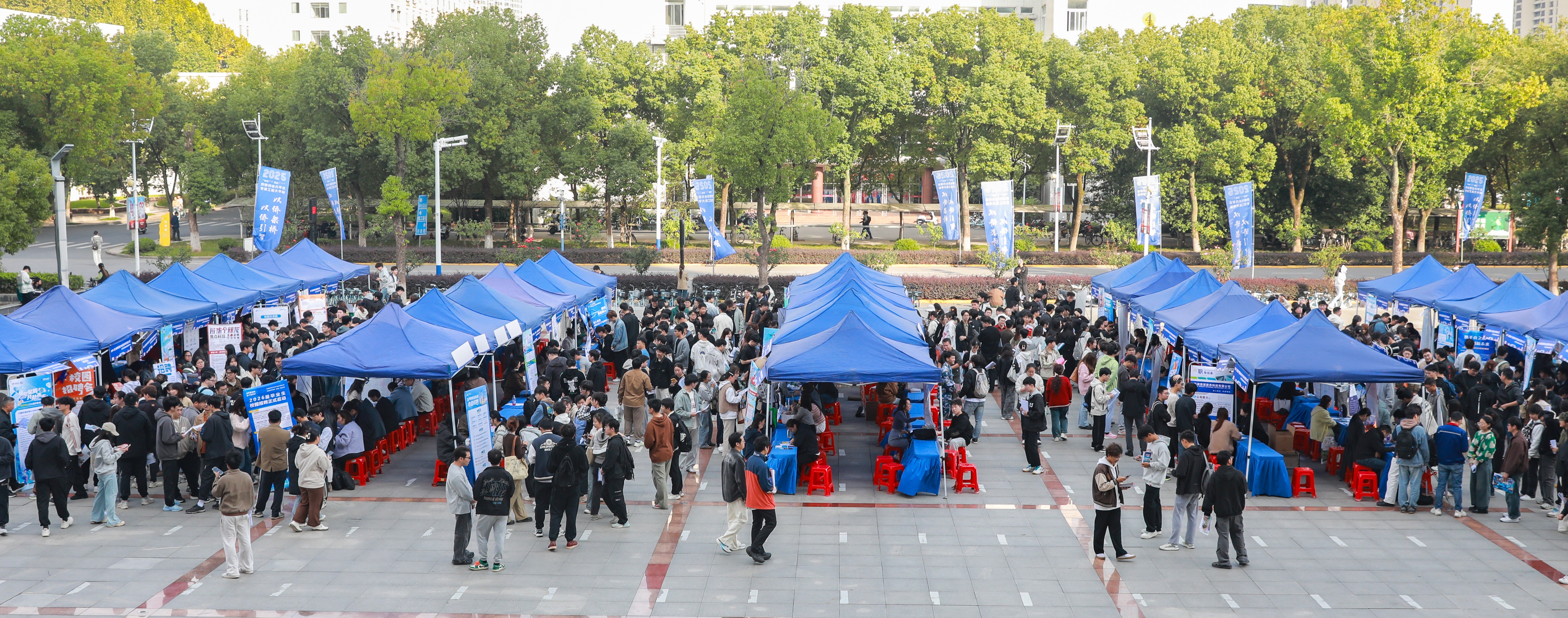 本网讯 10月29日,学校在图书综合楼广场举办2026届毕业生秋季校园大型双选会。校党委书记卢平,校党委常委、副校长张开炳深入招聘会现场指导就业工作。